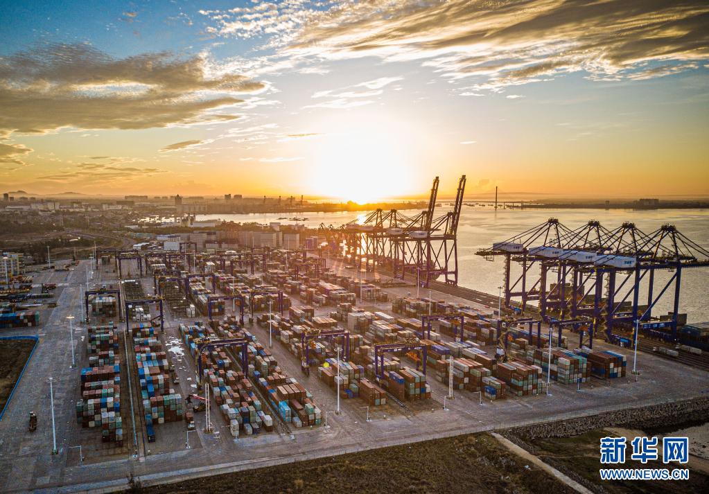 這是5月26日在海南洋浦經濟開發區拍攝的洋浦國際集裝箱碼頭(無人機照片)。