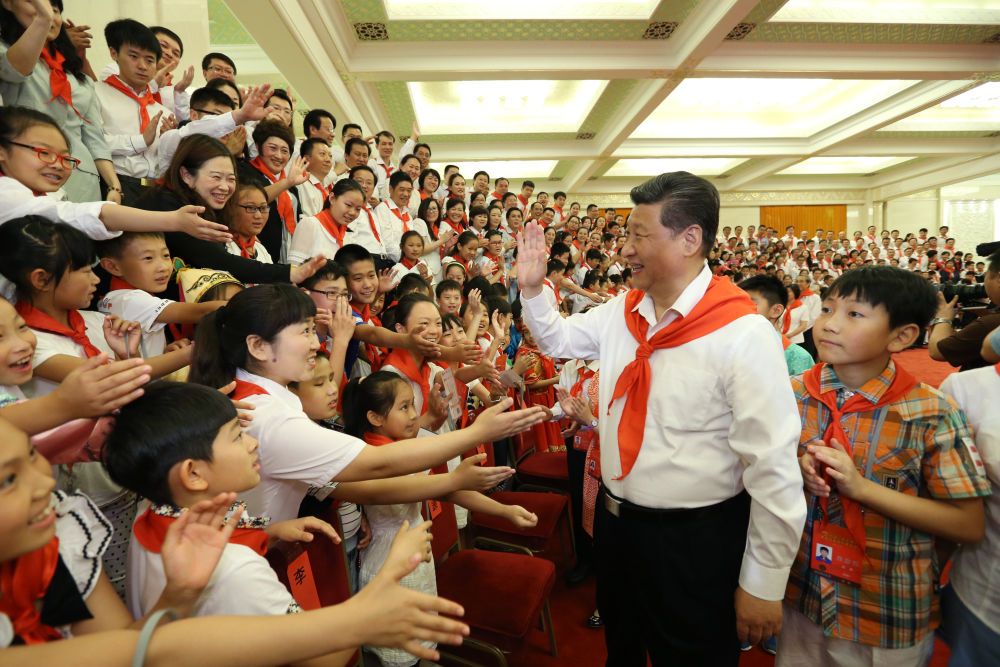 ↑2015年6月1日,習(xí)近平在北京人民大會堂親切會見中國少年先鋒隊第七次全國代表大會全體代表。