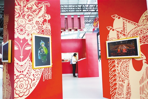 觀眾在服貿(mào)會文旅服務(wù)專題展區(qū)“大戲看北京——京劇文化之旅特展”參觀。特展設(shè)置了多個京劇主題體驗區(qū),讓觀眾沉浸式感受京劇文化的魅力。