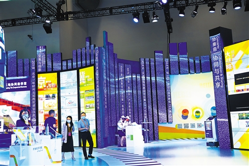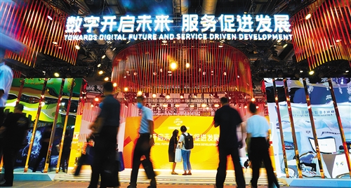 本屆服貿(mào)會主題為“數(shù)字開啟未來,服務(wù)促進發(fā)展”,重點展示有關(guān)國家和地區(qū)、我國各省區(qū)市及港澳臺服務(wù)貿(mào)易特色優(yōu)勢和最新成果。(經(jīng)濟日報記者翟天雪攝影報道)