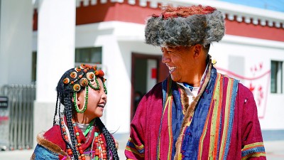 在阿里地區(qū)普蘭縣科迦村,身著普蘭傳統(tǒng)服飾的藏族村民 張德禮攝/光明圖片