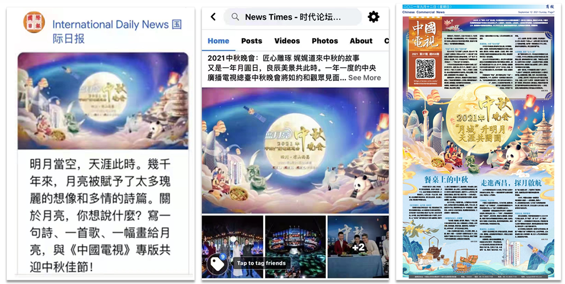 美國《國際日報》發布了《2021年中央廣播電視總臺中秋晚會》的定檔預告、精美海報和“給月亮的情詩”等征集活動,并策劃制作“中秋節專刊”,積極宣推總臺秋晚的優質內容,近日在北美和菲律賓的報紙、新媒體端刊載。