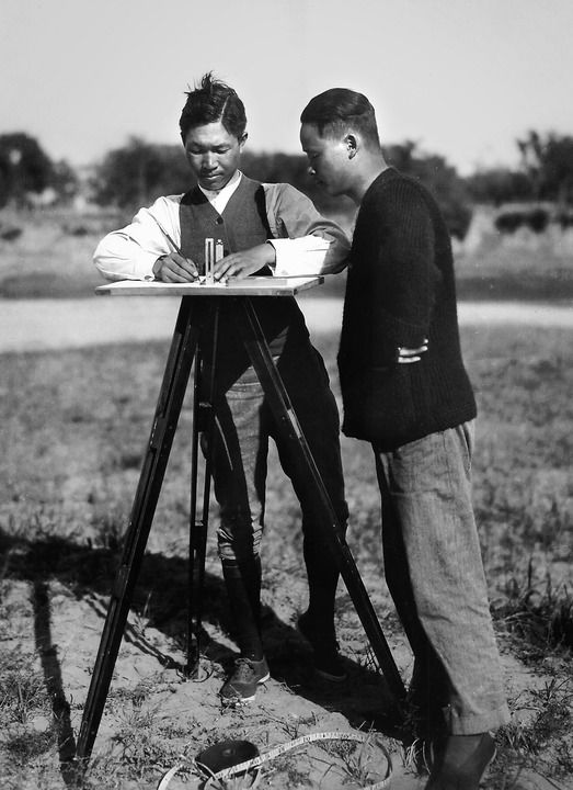 殷墟第一次發(fā)掘,董作賓(右)參與測(cè)量繪圖(資料照片)。新華社發(fā)(安陽(yáng)市殷墟博物館提供)
