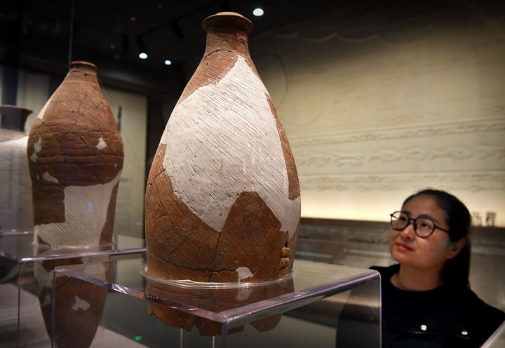 參觀者在仰韶文化博物館內(nèi)觀看展品(10月15日攝)。新華社記者 李安 攝
