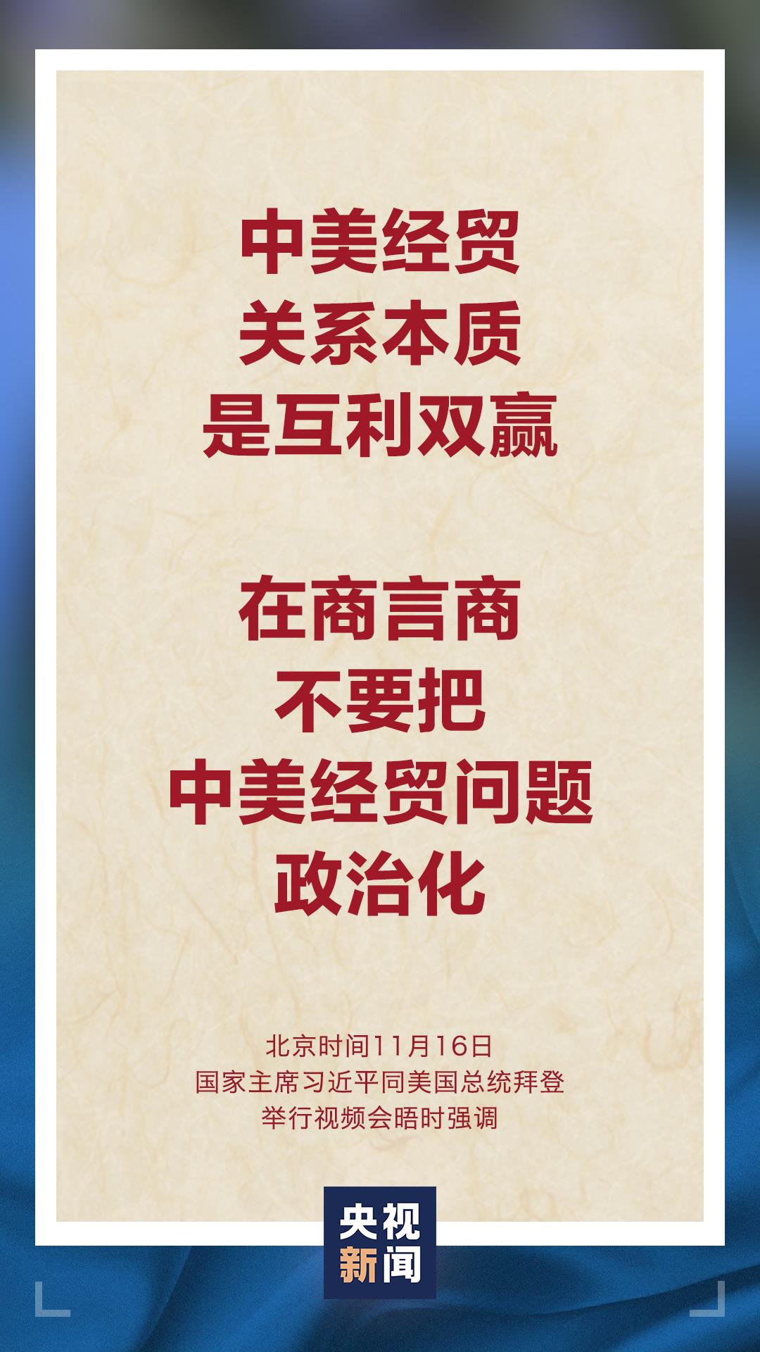 11月16日上午,國家主席習近平同美國總統拜登舉行視頻會晤。雙方就事關中美關系發展的戰略性、全局性、根本性問題以及共同關心的重要問題進行了充分、深入的溝通和交流。