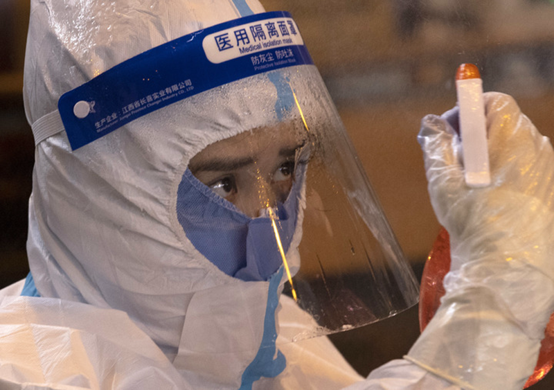 取消毒劑洗手、準備試劑管、用棉簽采樣……在哈爾濱市香坊區中北春城小區的一個核酸檢測點,每個動作,護士劉娟都得重復六七百次。