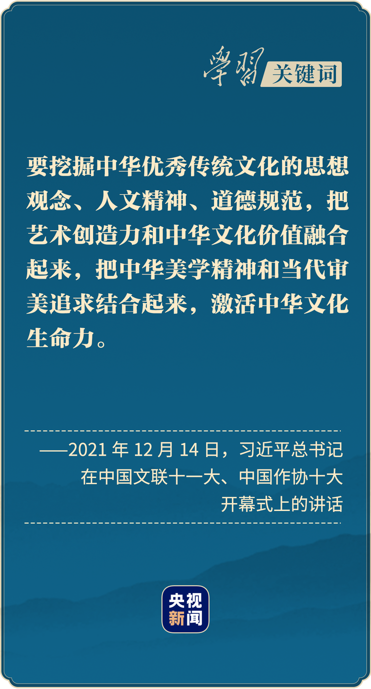 中華文化博大精深,為中華民族克服困難、生生不息提供了強大精神支撐。總書記希望廣大文藝工作者重視發展民族化的藝術內容和形式,繼承發揚民族民間文學藝術傳統,拓展風格流派、形式樣式,在世界文學藝術領域鮮明確立中國氣派、中國風范。