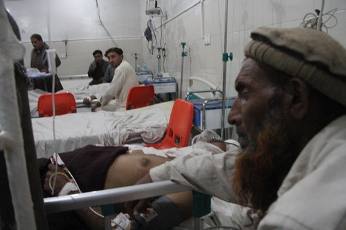 2019年9月19日,空襲中受傷的平民在阿富汗楠格哈爾省的一所醫(yī)院接受治療。阿富汗警方說,北約駐阿聯(lián)軍前一天在楠格哈爾省發(fā)動無人機空襲,造成18名平民死亡。新華社發(fā)(賽義夫拉赫曼·薩菲攝)