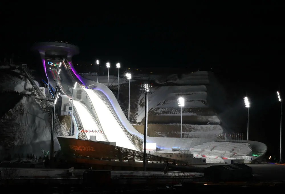 張家口賽區國家跳臺滑雪中心夜景(2021年12月31日攝)。新華社記者 楊世堯攝