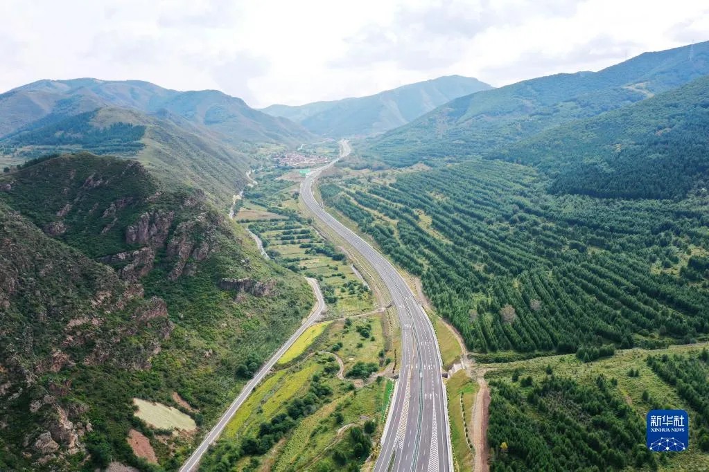 這是2021年8月31日拍攝的延崇高速河北段延伸工程部分路段(無人機照片)。新華社發(武殿森 攝)