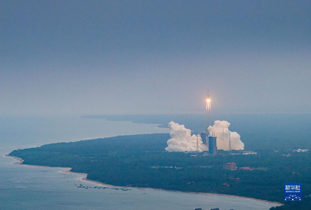 2021年4月29日11時23分,中國空間站天和核心艙在我國文昌航天發(fā)射場發(fā)射升空,準(zhǔn)確進(jìn)入預(yù)定軌道,任務(wù)取得成功。新華社記者 蒲曉旭 攝
