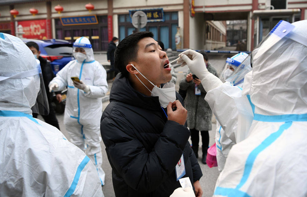 1月10日,西安市碑林區三學街社區“流動核酸檢測組”為居民做核酸檢測。新華社記者 陶明 攝