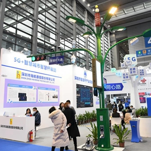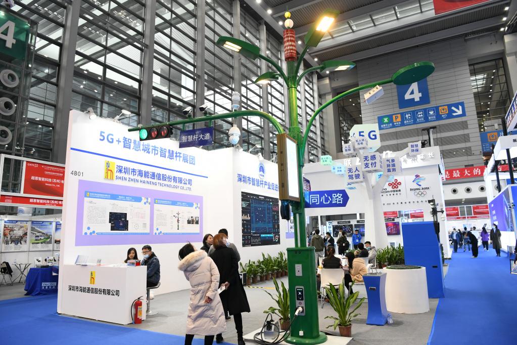 這是2021年12月27日拍攝的第二十三屆高交會(huì)上展出的多功能智慧桿。(新華社記者梁旭攝)