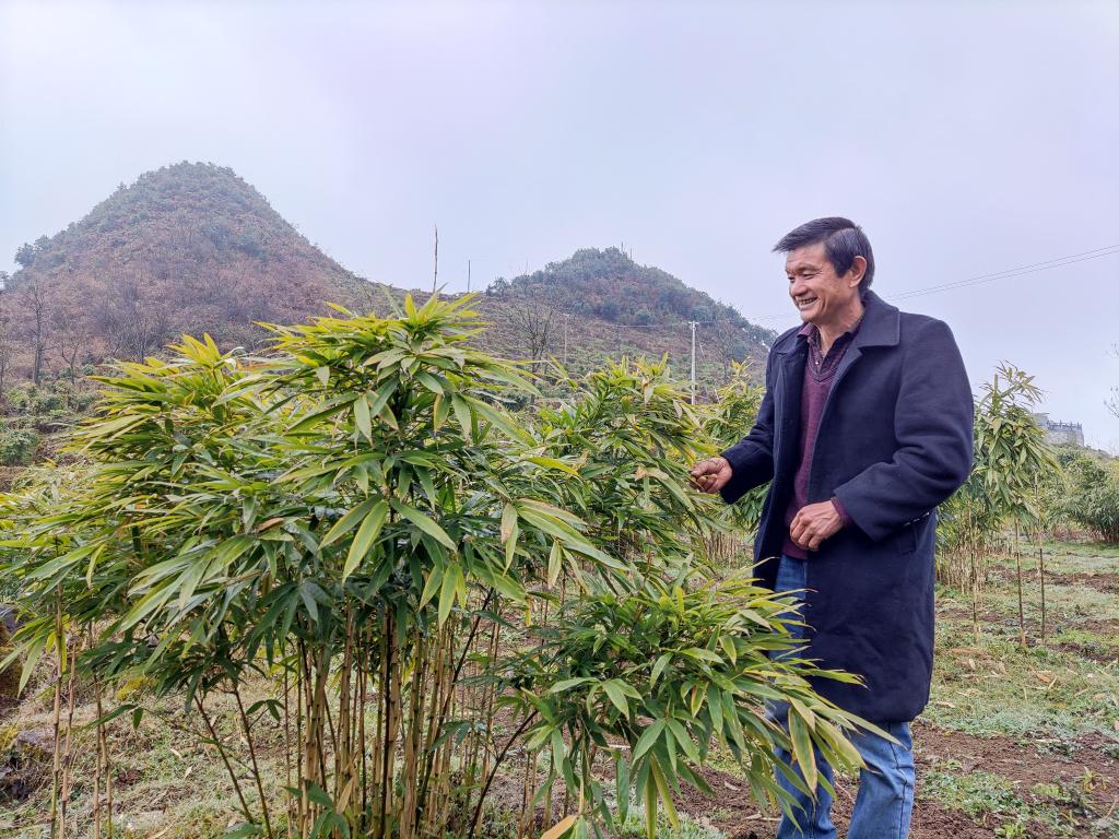 1月6日,鎮雄縣赤水源鎮銀廠村村民吳常開介紹自家種的方竹。 新華社記者 林碧鋒 攝