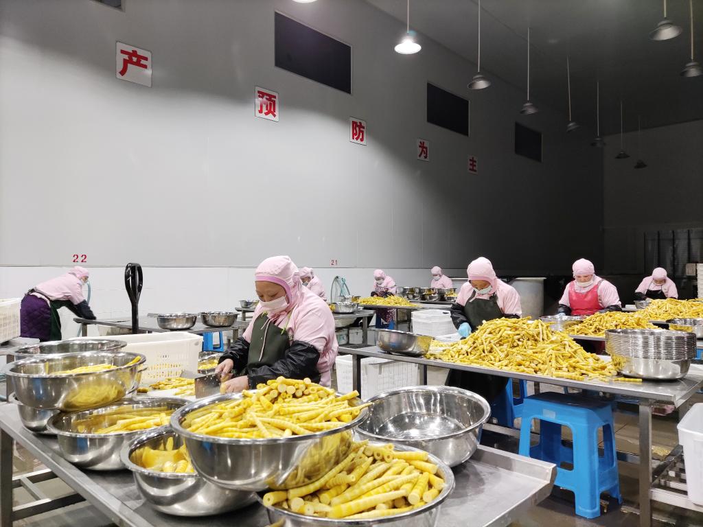 在碗廠鎮農特產品產業園,竹筍加工廠多條生產線有序運轉。
