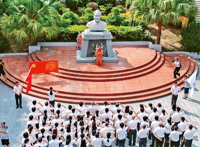 谷文昌在福建省東山縣工作14年間,帶領東山人民與風災、旱災抗爭,植樹造林,興修水利,改善交通,發(fā)展生產,把一個風沙肆虐的荒島變成生機盎然的東海綠洲,為經濟建設和社會發(fā)展奠定了堅實基礎。習近平總書記多次提到谷文昌,稱贊他“在老百姓心中樹起了一座不朽的豐碑”。圖為2019年7月1日,黨員干部在谷文昌塑像前重溫入黨誓詞。 東山縣委宣傳部供圖 許照臨/攝