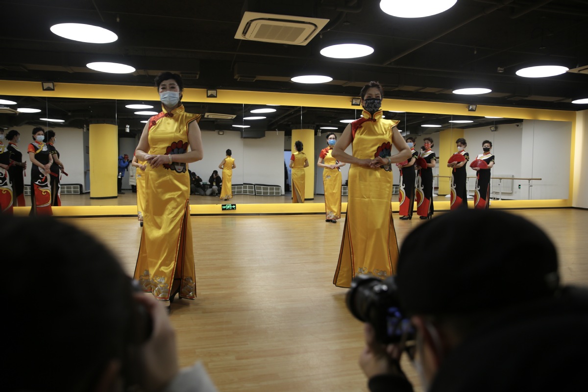 2月3日,媒體記者在“美后肆?xí)r”景山市民文化中心拍攝社區(qū)老年模特隊展示活動。中國日報記者 匡林華 攝