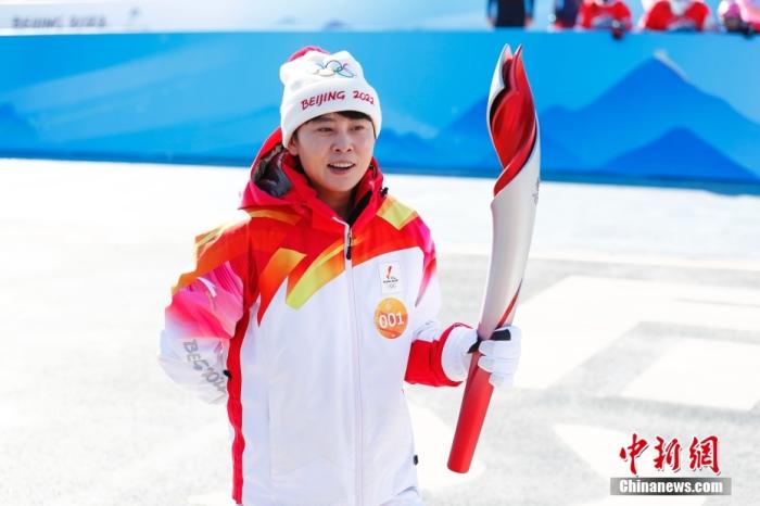 資料圖:2月2日,北京冬奧會火炬在北京冬奧公園傳遞。圖為火炬手王濛。 中新社記者 趙雋 攝