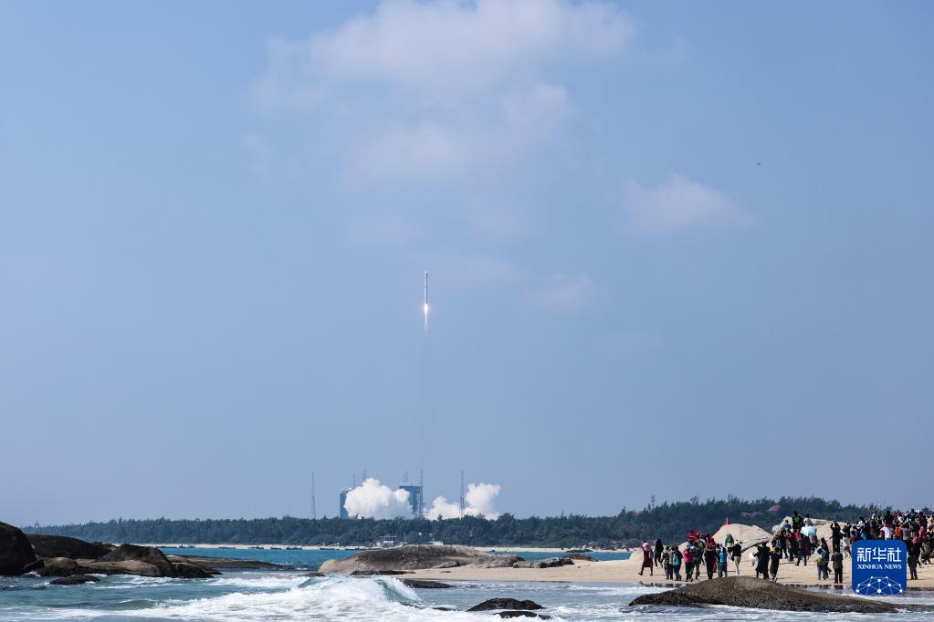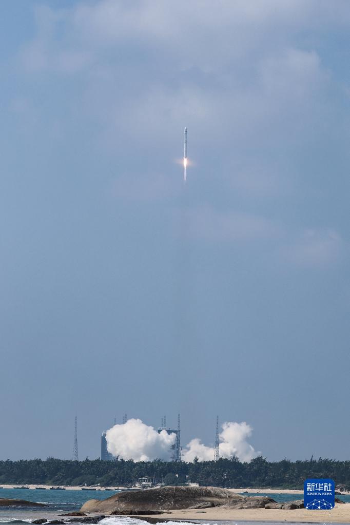 2月27日11時06分,我國在文昌航天發射場使用長征八號運載火箭成功將22顆衛星發射升空,創造我國一箭多星新紀錄。 新華社記者 張麗蕓 攝