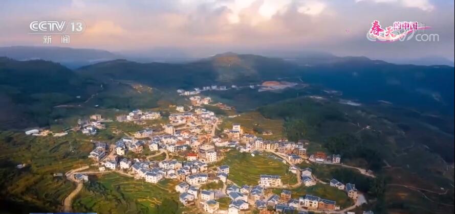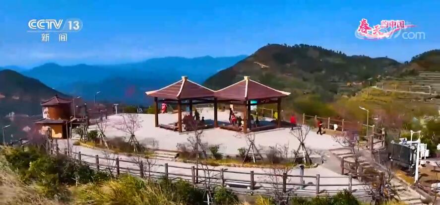 跟隨鏡頭,我們來到福建廈門的同安區,這里的傳統古村落:白交祠村,上千株依山勢而種的高山櫻花,正迎春怒放,生機勃勃,遠遠望去,如云似錦,與層層翠綠的茶山梯田相映成趣。
