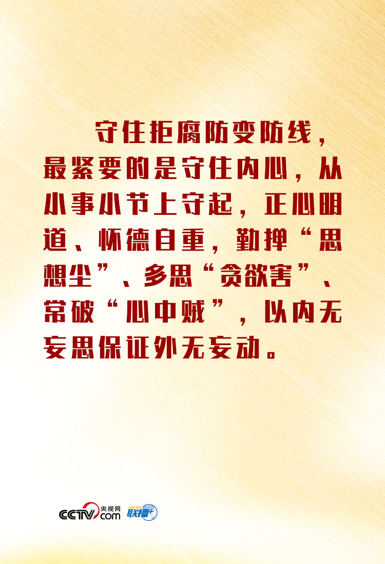 總書記還指出,干部守住守牢拒腐防變防線,要層層設防、處處設防,守住“五關”: