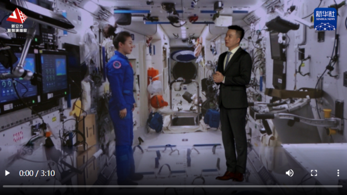 這次,我們通過新華社新立方智能化演播室,運用虛擬空間、XR等創(chuàng)新技術(shù),打破時空限制,讓主持人“來到”浩瀚宇宙的中國空間站,與王亞平代表一起圍繞履職故事,展開一場跨越時空的對話。