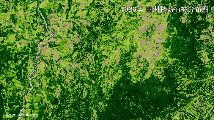 這是云南省保山市施甸縣善洲林場1989年和2021年的衛星植被分布圖對比。