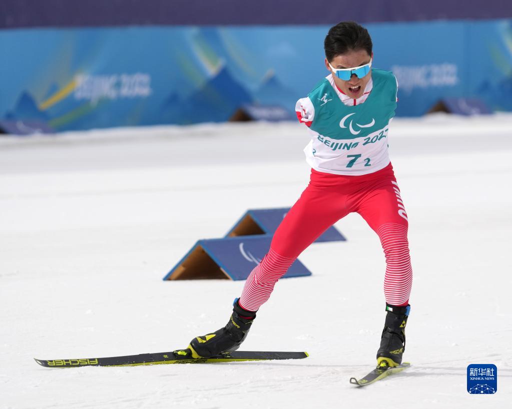 3月13日,中國(guó)隊(duì)選手王晨陽(yáng)在北京2022年冬殘奧會(huì)殘奧越野滑雪混合接力4X2.5公里比賽中。最終中國(guó)隊(duì)獲得亞軍。