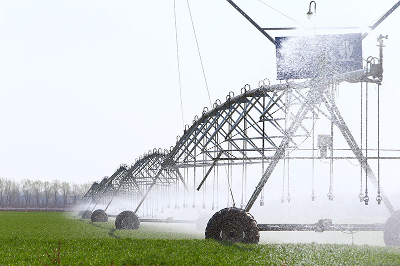 2021年2月23日,在河南省鶴壁市浚縣一片高標準農田里,自走式噴灌機在為小麥澆水。