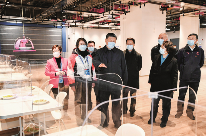 2022年1月4日,中共中央總書記、國家主席、中央軍委主席習(xí)近平在北京考察2022年冬奧會、冬殘奧會籌辦備賽工作。圖為1月4日上午,習(xí)近平在北京冬奧會、冬殘奧會主媒體中心智慧餐廳,察看智能餐飲設(shè)備運(yùn)行情況。圖/新華社記者 謝環(huán)馳 攝