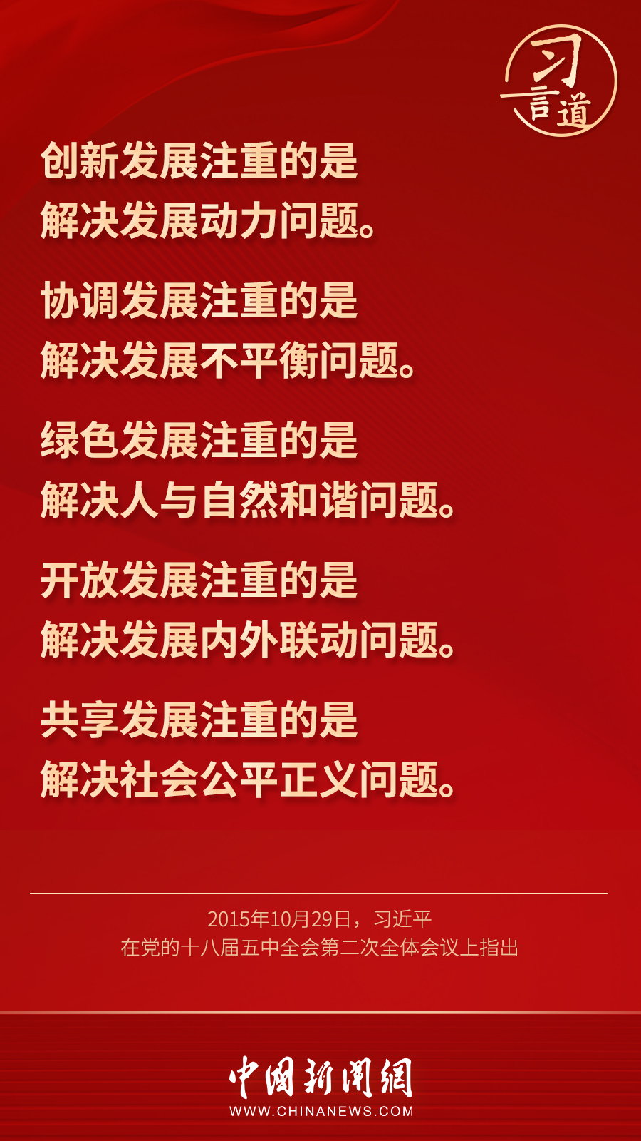 黨的十八大以來,以習近平同志為核心的黨中央創造性地提出以“創新、協調、綠色、開放、共享”為主要內容的新發展理念。習近平總書記多次在重要會議和活動中闡釋新發展理念的深刻含義——