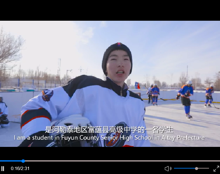 吾拉哈提·別依斯別克是阿勒泰地區(qū)富蘊縣高級中學的一名學生,也是冰球隊的一名隊員。他平時會在縣體育館訓練冰球,和隊友們一同訓練一同嬉鬧非常快樂。