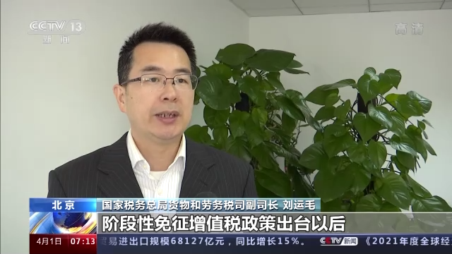 國(guó)家稅務(wù)總局貨物和勞務(wù)稅司副司長(zhǎng)劉運(yùn)毛:今年新的小規(guī)模納稅人階段性免征增值稅政策出臺(tái)后,疊加現(xiàn)有的起征點(diǎn)等增值稅優(yōu)惠政策,可以說(shuō)幾乎覆蓋所有小規(guī)模納稅人。