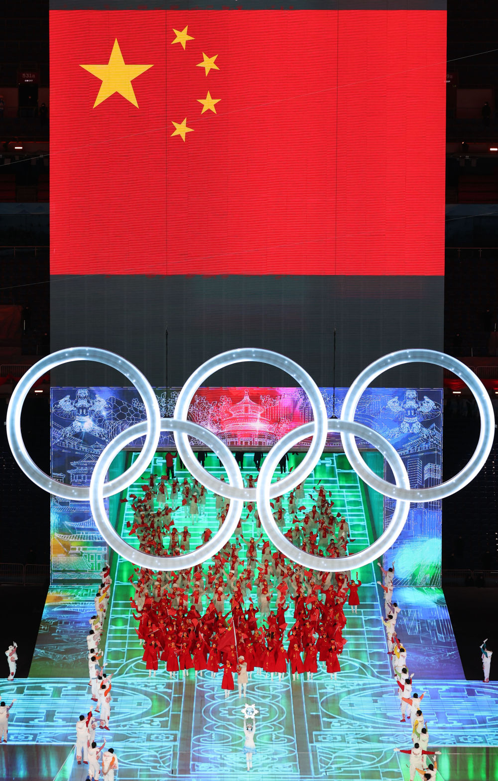 在北京冬奧會開幕式上,中華人民共和國國旗入場。