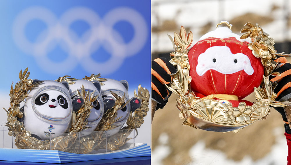 風靡全球的北京冬奧會吉祥物“冰墩墩”和冬殘奧會吉祥物“雪容融”。