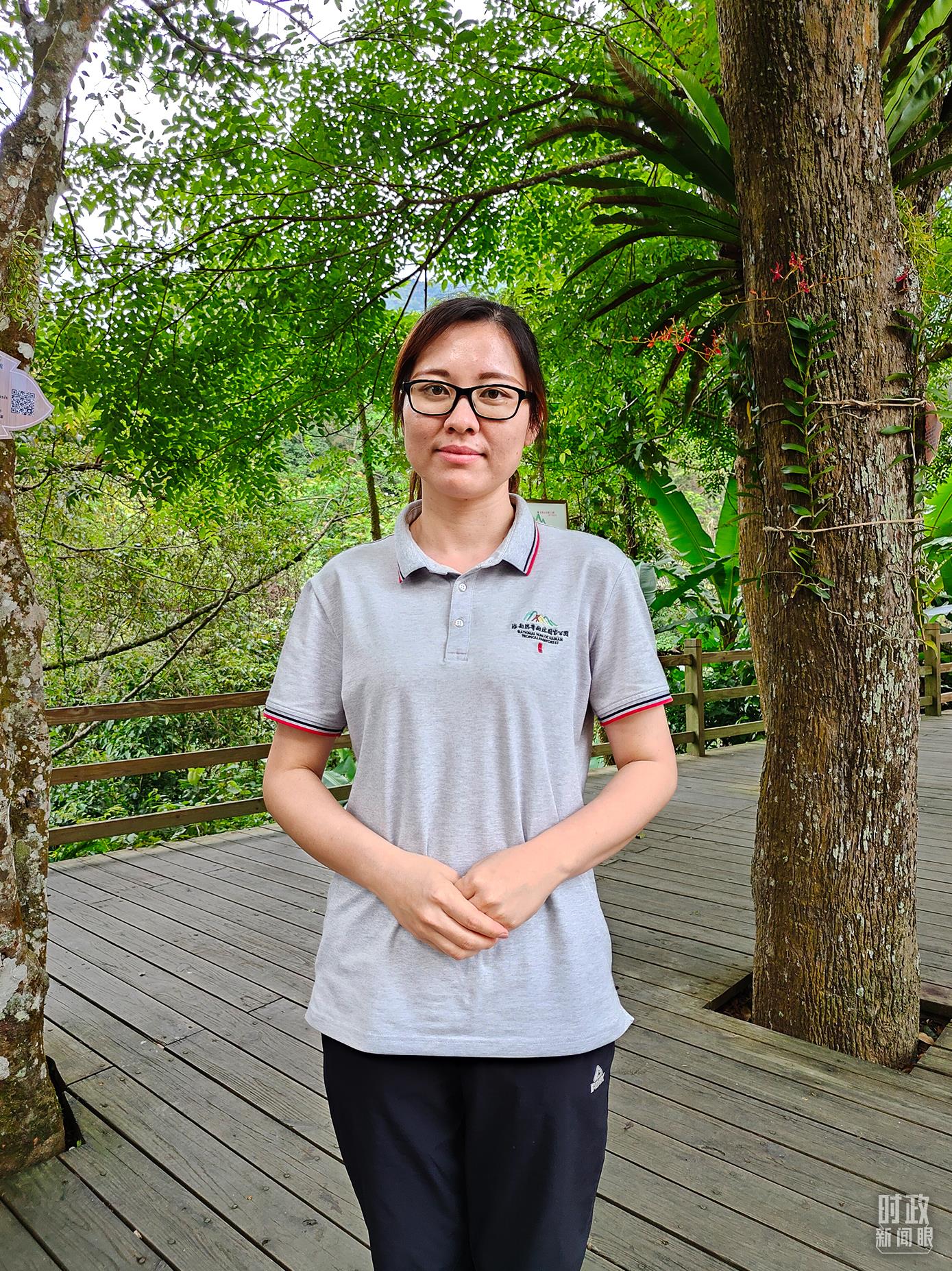△鄭燕,現(xiàn)為海南熱帶雨林國(guó)家公園管理局五指山分局宣教科普科工作人員。(總臺(tái)央視記者楊立峰拍攝)