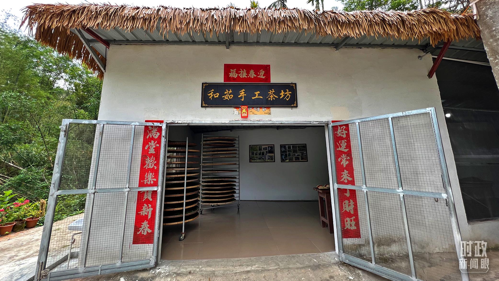 △王柏和、王菊茹夫婦開(kāi)的手工制茶作坊以及他們制作水滿大葉茶時(shí)的工作照。(總臺(tái)央視記者邢彬、央廣記者潘毅拍攝)