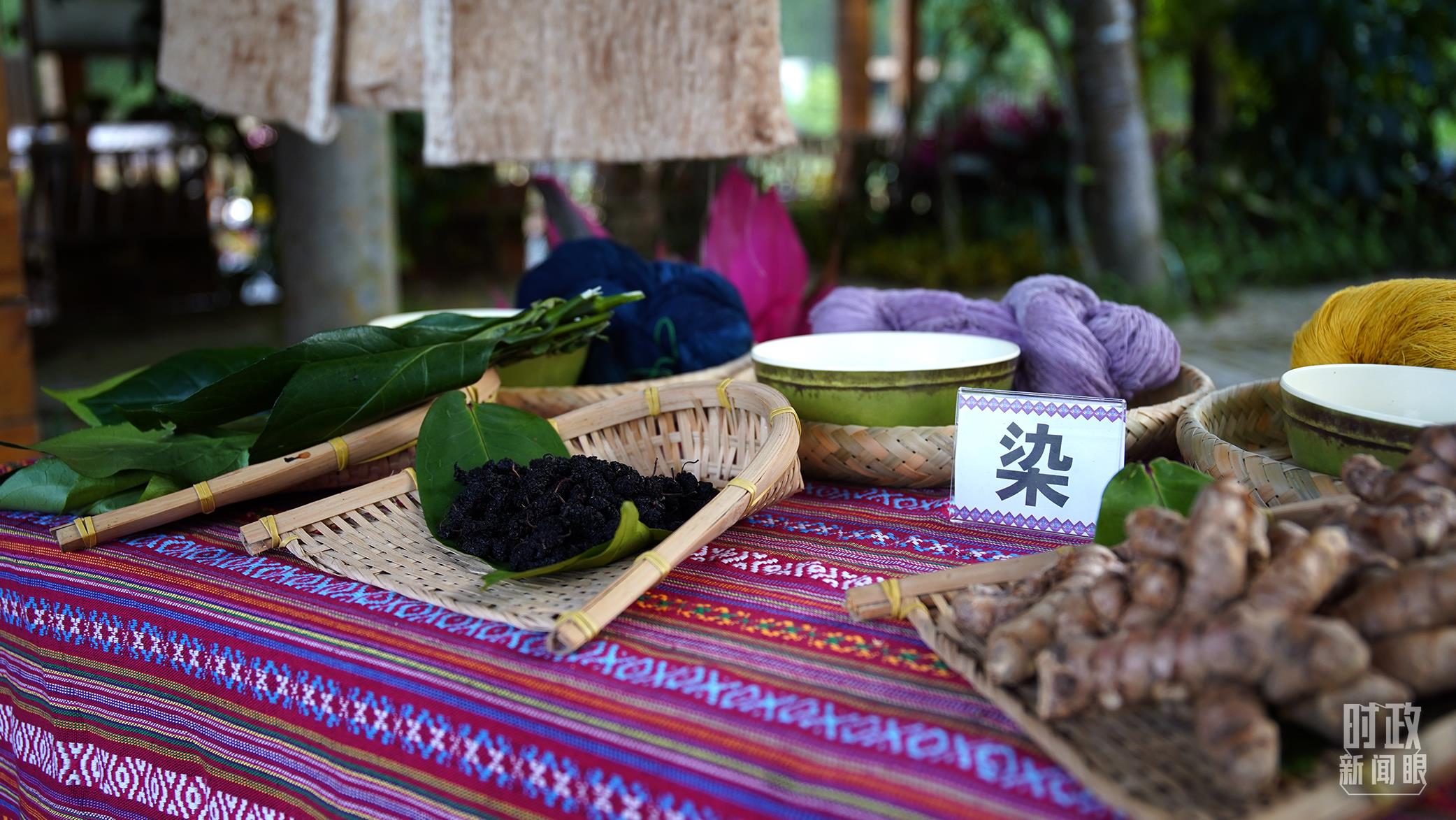 △制作黎錦的染料及來(lái)源。(總臺(tái)央廣記者潘毅拍攝)