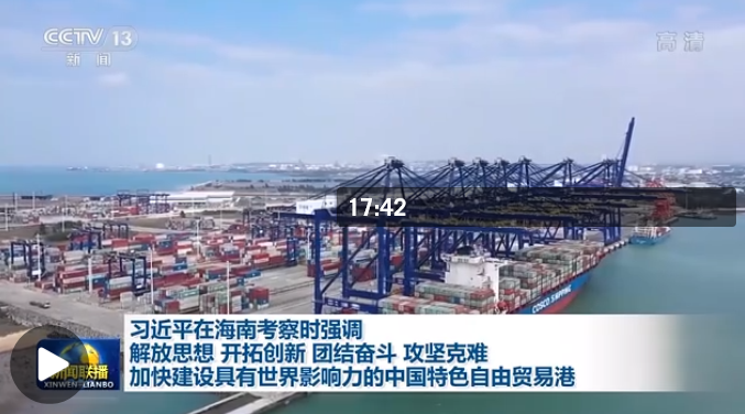 今年4月13日,此次考察最后一天,總書記對海南推進自由貿易港建設提出新的要求。他指出,要加快建設具有世界影響力的中國特色自由貿易港,讓海南成為新時代中國改革開放的示范。
