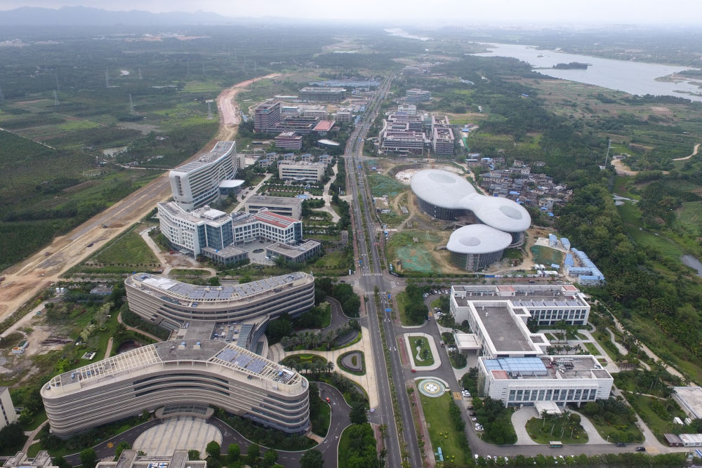 ↑2020年4月3日拍攝的博鰲樂城國際醫療旅游先行區(無人機照片)。