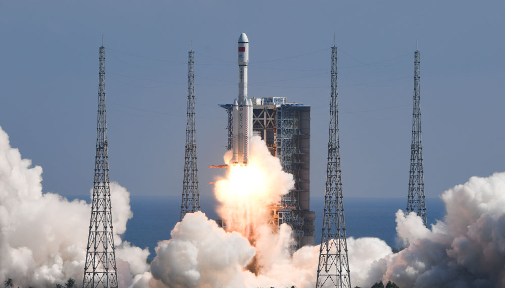 ↑2021年9月20日15時10分,搭載天舟三號貨運飛船的長征七號遙四運載火箭,在我國文昌航天發射場點火發射。