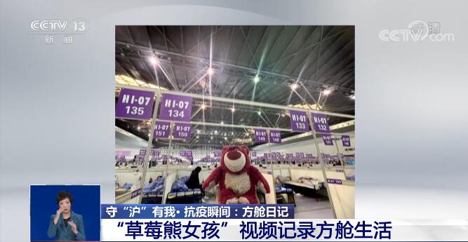 我們首先來認(rèn)識一個“草莓熊女孩”。4月14日,在世博方艙待了15天的凱梨終于回家了,從接到疾控中心的第一個流調(diào)電話開始,凱梨就開始用視頻記錄她這一段特殊的人生經(jīng)歷。因為隨身帶的小玩偶很搶眼,大家也親切地稱呼她“草莓熊女孩”。活潑樂觀的凱梨用細(xì)膩、善意、理解的目光記錄著方艙內(nèi)的一切,在她的方艙日記里還有這樣一段溫暖的記錄。在世博展覽中心方艙醫(yī)院,每天中午及傍晚都有一個聲音準(zhǔn)時響起,我們現(xiàn)在聽到的就是專門為方艙中正在接受隔離治療的感染者們開通的專屬電臺。他們有一套獨立的廣播系統(tǒng),每日發(fā)布一些通知、信息,也會播放音樂、相聲等舒緩情緒的節(jié)目。“草莓熊女孩”凱梨說,每次一放音樂就忍不住跟著哼唱起來。