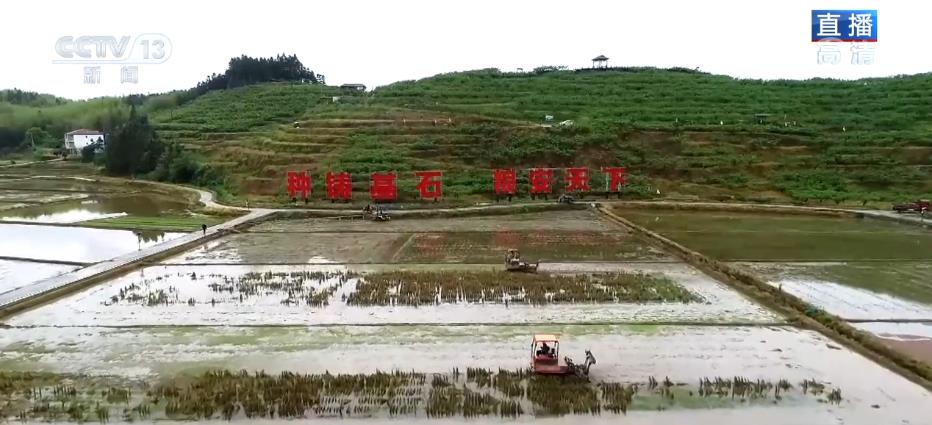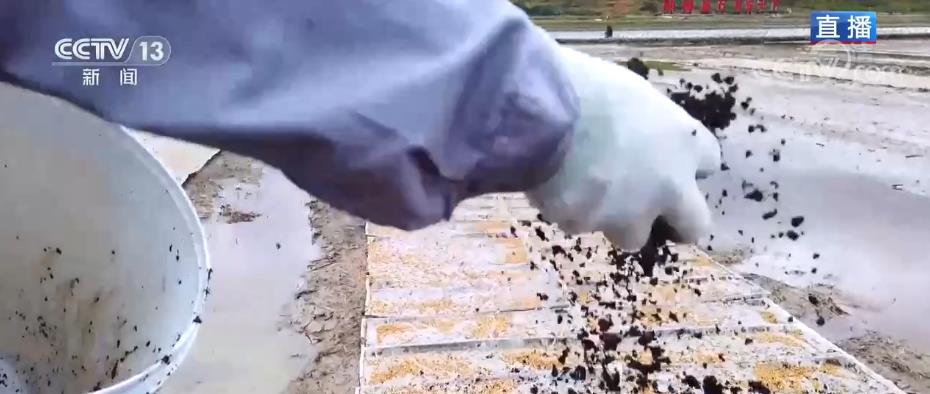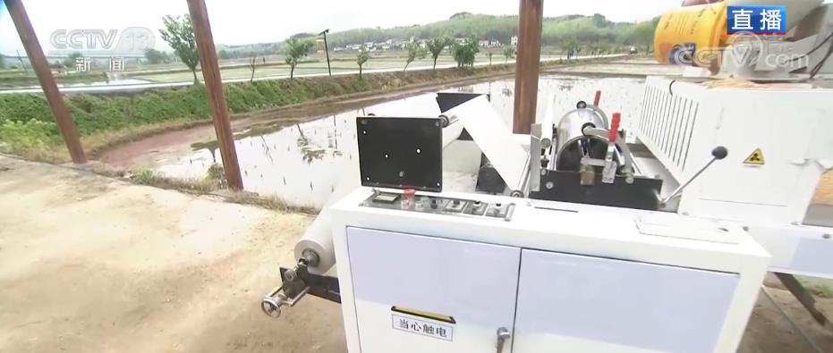 此時(shí)此刻在大田里,人們正在將一張張白紙平鋪在秧地上,就像了展開了一個(gè)個(gè)卷軸畫卷。您能猜出來他們?cè)谧鍪裁磫?答案在這兒來揭曉,這是一個(gè)播種神器,它的名字叫“印刷播種機(jī)”。這個(gè)寬約60厘米的白紙就是育秧紙,它是用可降解的材質(zhì)做成的。前面有一個(gè)滾筒,里面裝的是特制的淀粉膠,按照之前設(shè)置好的行間距,淀粉膠會(huì)被均勻地印刷在育秧紙上,伴隨著機(jī)器向前運(yùn)動(dòng),種子會(huì)被淀粉膠粘在育秧紙上,這個(gè)時(shí)候的育秧紙就可以裁下來放在水田里進(jìn)行播種。上面再鋪上一層營養(yǎng)土。這種技術(shù)每小時(shí)可以完成60畝大田的播種,相比于人工,它不僅提升了效率,而且還節(jié)約了30%的種子。我身后正在機(jī)插的秧苗,就是通過這種方式培育出來的。看得出來,當(dāng)?shù)氐霓r(nóng)民個(gè)個(gè)都是農(nóng)機(jī)高手,不管是耕田機(jī)、播種機(jī)、插秧機(jī),還是無人機(jī),可以說是樣樣精通。