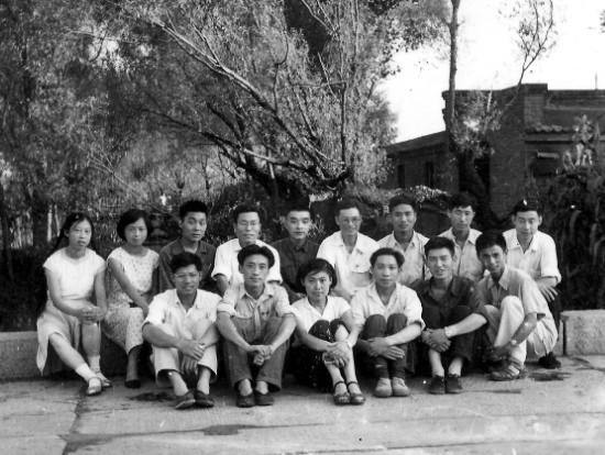 “東方紅一號”衛星總體組合影(后排右6何正華、前排右1胡其正)。 受訪者供圖
