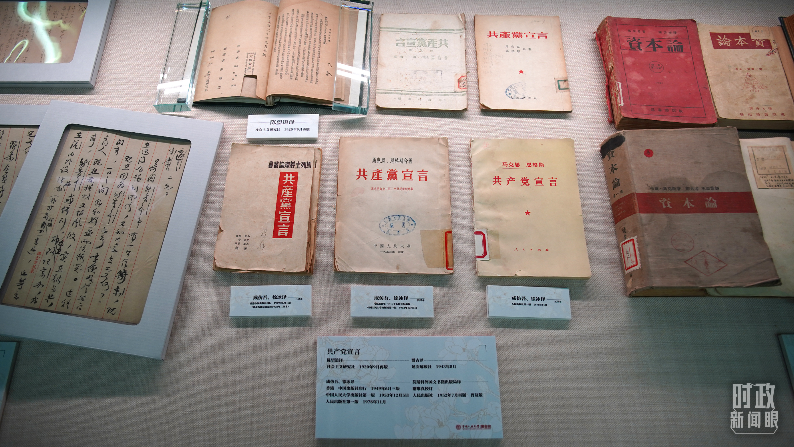 △圖書館內,《共產黨宣言》多個譯本展示。(總臺央廣記者潘毅拍攝)