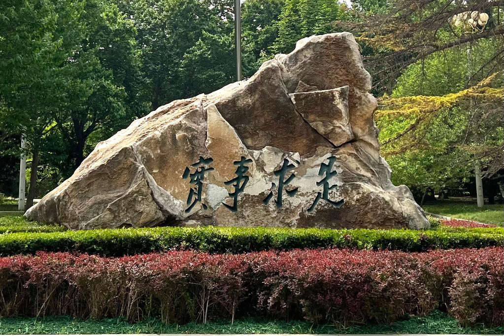 北京,中關村大街59號,以紅色為建筑群主色調的校園端莊大氣。正對校園東門,巨石上刻著的“實事求是”四個大字遒勁有力。