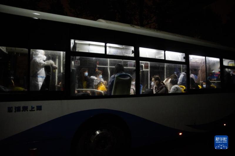 4月28日晚,有雨,在上海浦東北蔡鎮,參加抗疫的工作者依然在忙碌。