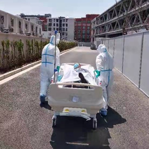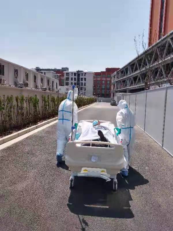 這里是位于閔行區的復旦大學附屬中山醫院臨時執業點,本是新建的上海市老年醫學中心,計劃5月對外開放。一場疫情打亂節奏,3月1日被緊急征用為新冠肺炎后備定點醫院,3月11日正式啟用。隨著老年感染者逐漸增加,中心“負重”而行,承擔了眾多老年、重癥病人的救治。