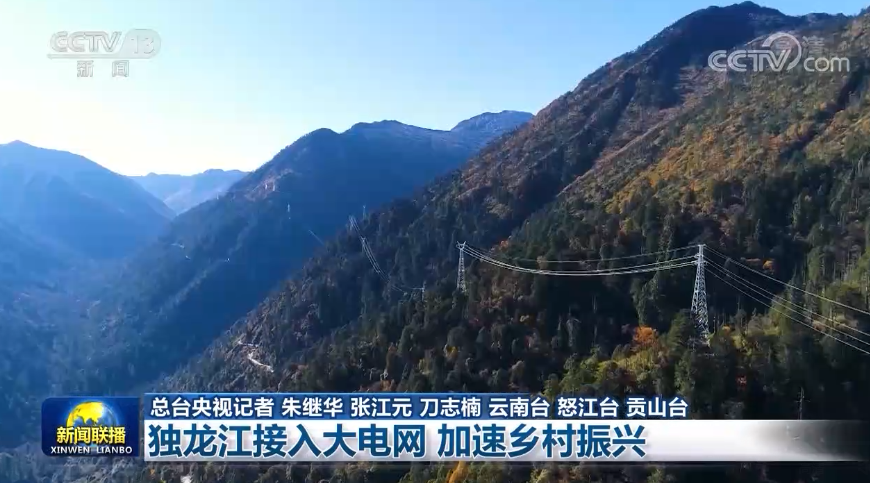 央視網消息(新聞聯播):云南怒江州獨龍江鄉日前正式接入南方電網主網,用上了穩定可靠的電能。