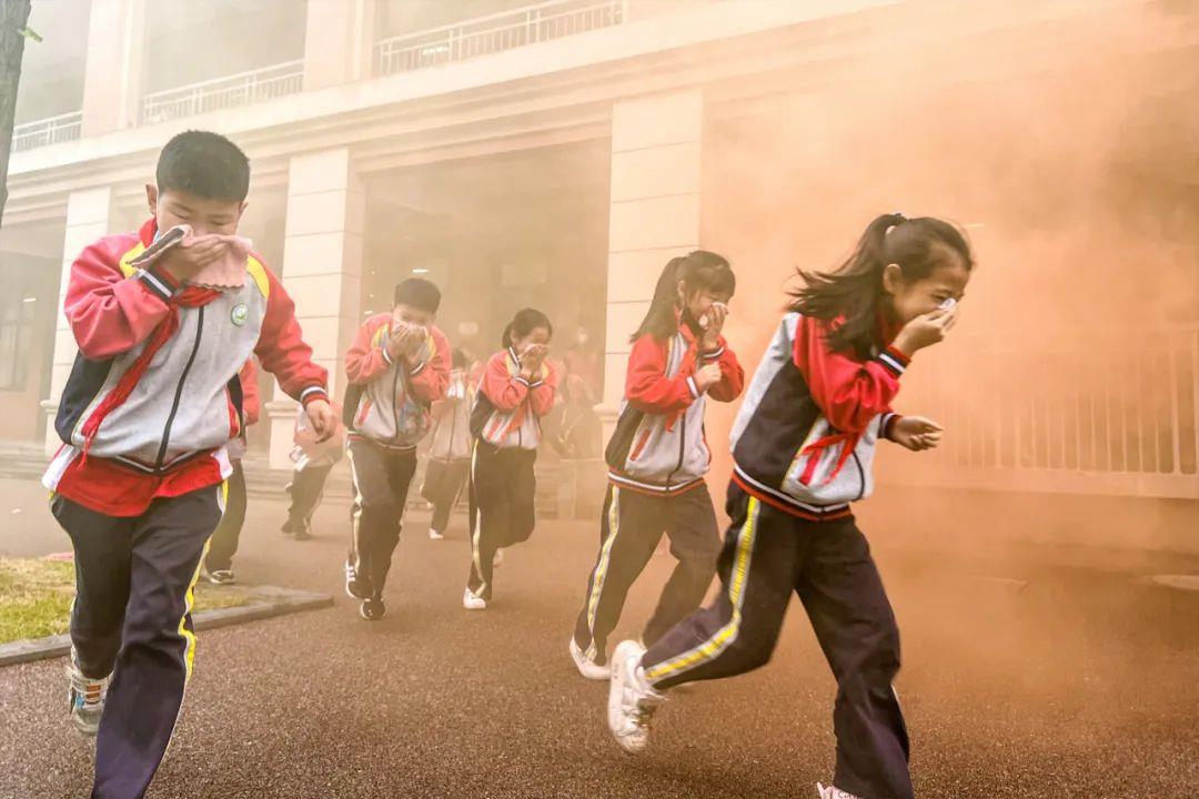 △5月12日,浙江省湖州市長(zhǎng)興縣,某小學(xué)正在進(jìn)行火災(zāi)應(yīng)急疏散演練。